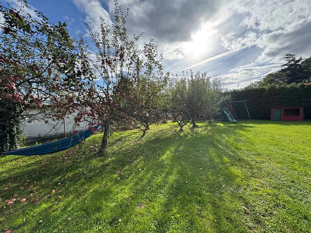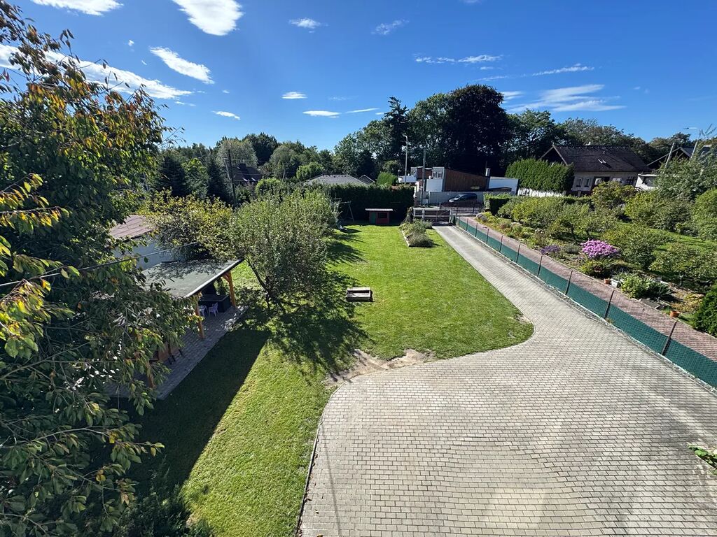 Součástí celé nemovitosti je také rozlehlá společná zahrada s bytem z druhého nadzemního podlaží, upravená, o velikosti 1233 m², najdete zde ovocné stromy, keře, pergolu, dětskou zónu, ale i další místa na parkování aut pro hosty.