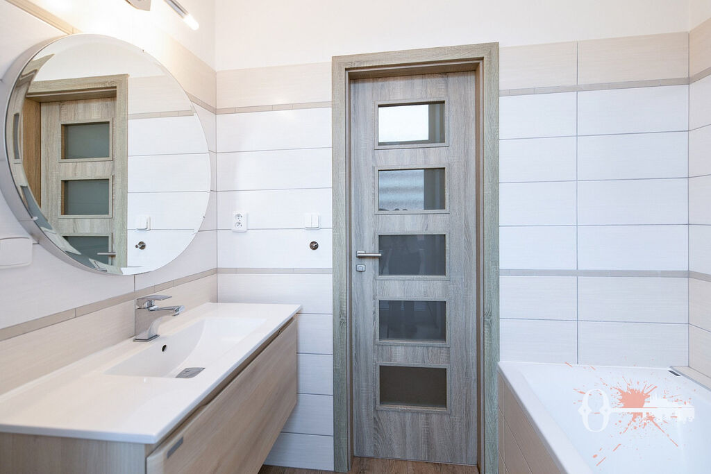 Soukromí a bezpečí zaručují české interiérové dveře a bezpečnostní vstupní dveře. Okna s trojitým zasklením pak přispívají k příjemné atmosféře i klidnému bydlení.