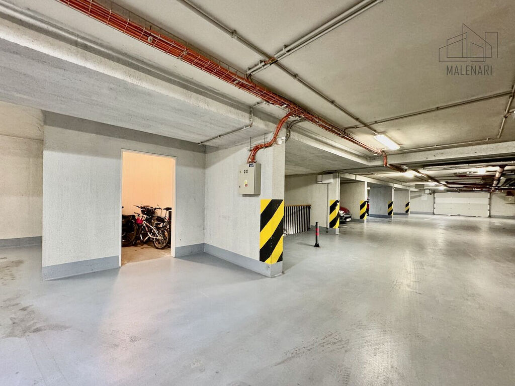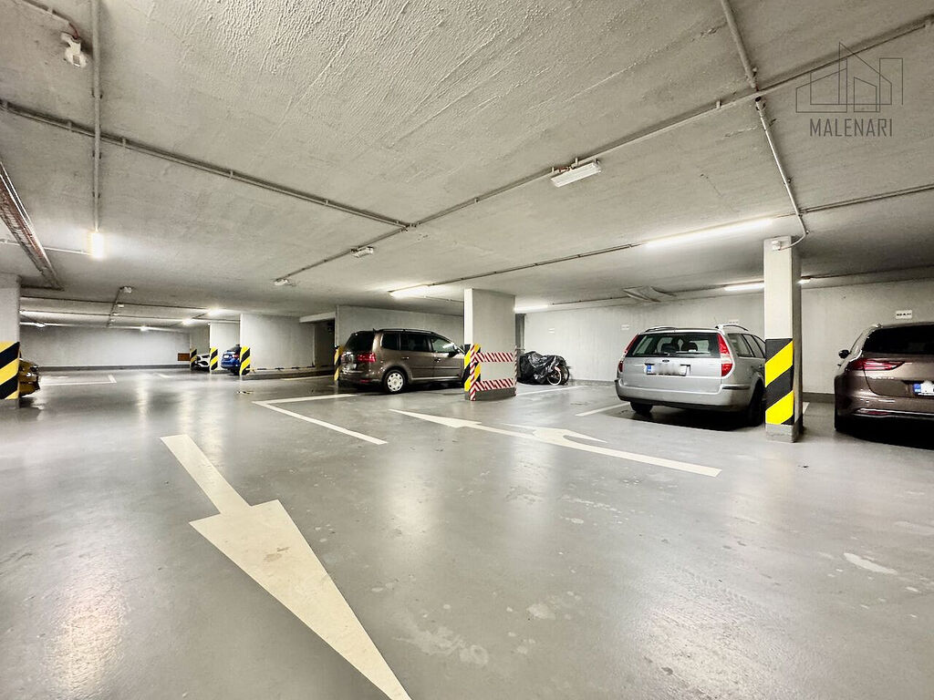 Společně s bytem se prodává garážové stání, které se nachází ve 2. podzemním podlaží téže budovy. Přes prostory garáží je možný bezbariérový přístup do bytu (pomocí výtahu). V garážích je také k dispozici dnes velmi žádaná kolárna/kočárkárna.