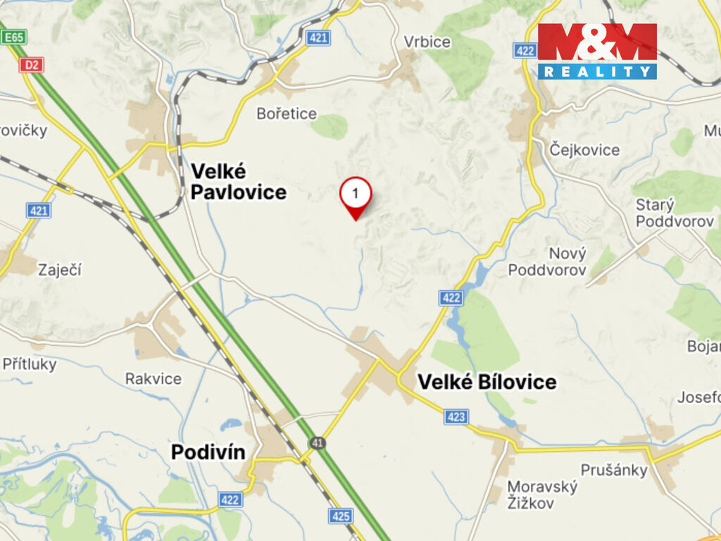 V této lokalitě nabízíme k prodeji i menší vinohrad o výměře 3 600 m² vzdálený pouhých 250 metrů. Ideální příležitost pro vinaře hledající perspektivní vinici v jedné z nejžádanějších oblastí jižní Moravy.