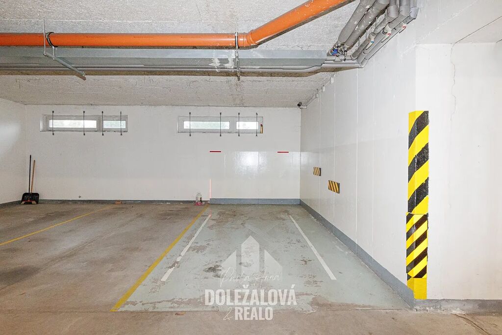 Garážové stání je suché, dobře přístupné a poskytuje bezpečné parkování v rámci bytového domu.