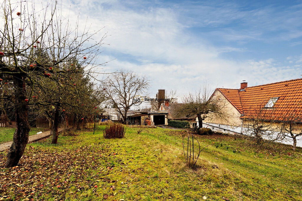 Rovinatá zahrada o více než tisíci metrech čtverečních je osázena vzrostlými ovocnými stromy – jabloněmi, ořešákem a dalšími plodícími dřevinami. Nabízí dostatek prostoru pro dům, garáž, terasu, bazén i soukromí.