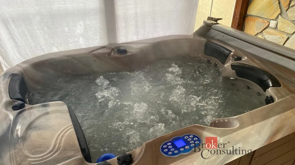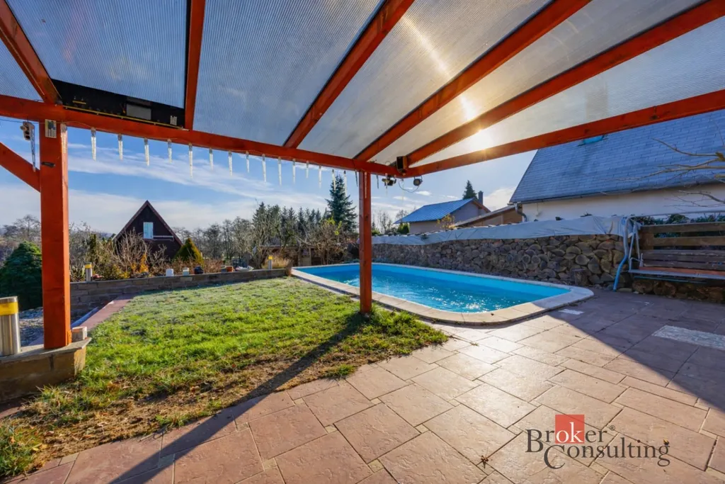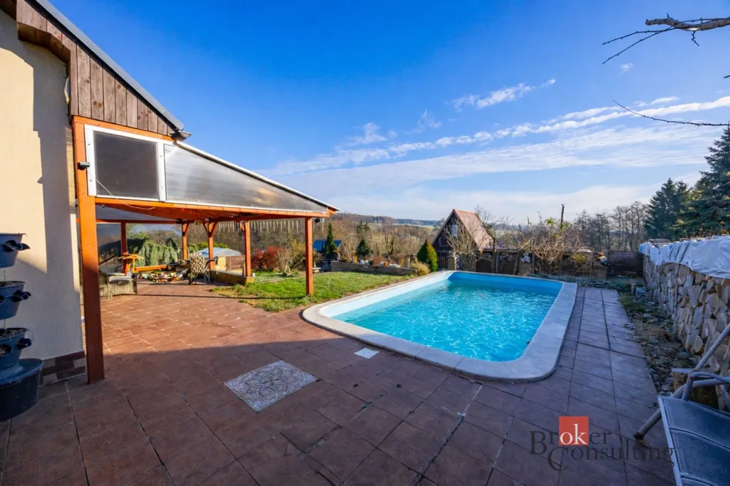 Součástí domu je již zmíněná zastřešená terasa, umožňující příjemné posezení i za horšího počasí. K domu je přistavěná také část s infrasaunou s přímým výhledem do přírody při saunování. Další místnost slouží jako zahradní veranda či párty místnost a je vybavena luxusní vířivkou. Zahrada je architektonicky navržená a členitě řešená, s dekorativními zákoutími, příjemným osvětlením i ozvučením pro večerní atmosféru. Dominantou celého venkovního prostoru je velký bazén. Nedílnou součástí je také samostatná dílna, ideální místo pro kutily, hobby práce, domácí projekty nebo bezpečné uložení nářadí.