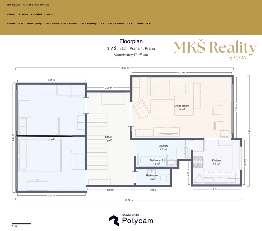 Lokalita Prahy 4 nabízí kompletní občanskou vybavenost a výbornou dopravní dostupnost do centra. Tento mezonet představuje ideální alternativu pro rodiny nebo klienty, kteří hledají prostor domu s komfortem a výhledy městského bytu.