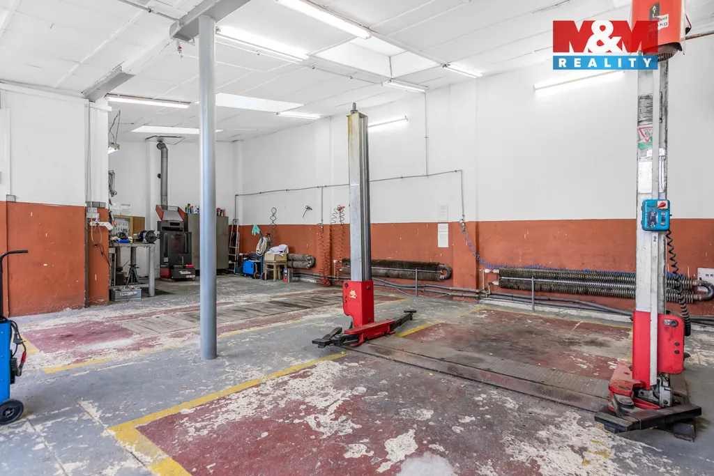 Obchodní prostor – 232 m², kancelář – 22 m², dílna 1 – 65 m²: hever, montážní jáma, olejový kotel, umyvadlo, vstup na půdičku, světlíky. Dílna 2 – 58 m²: myčka, umyvadlo, vstup na půdu.