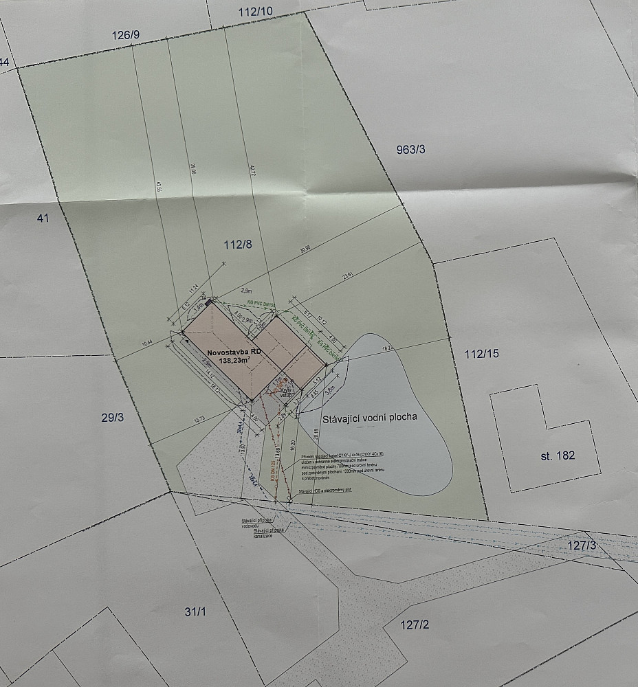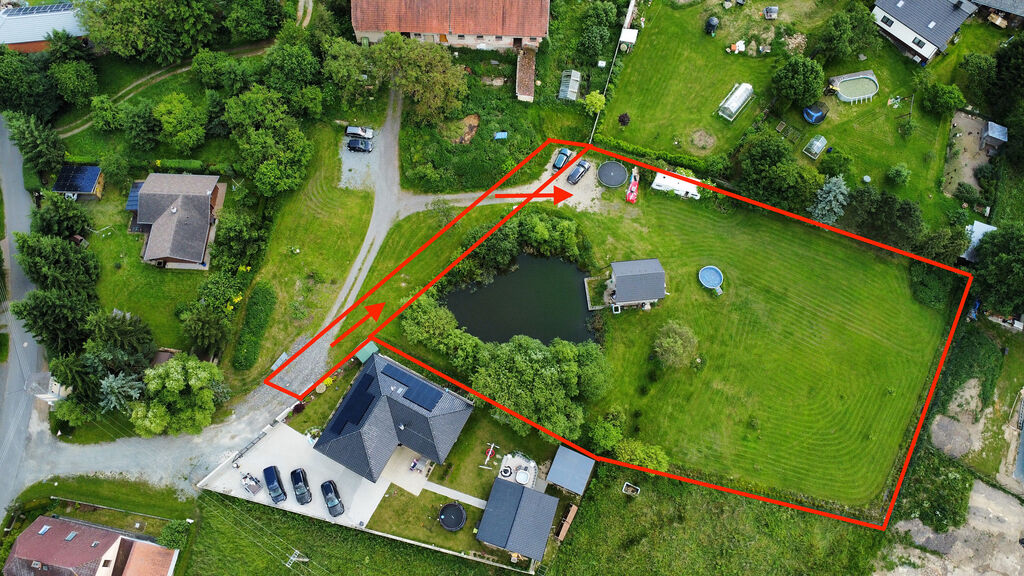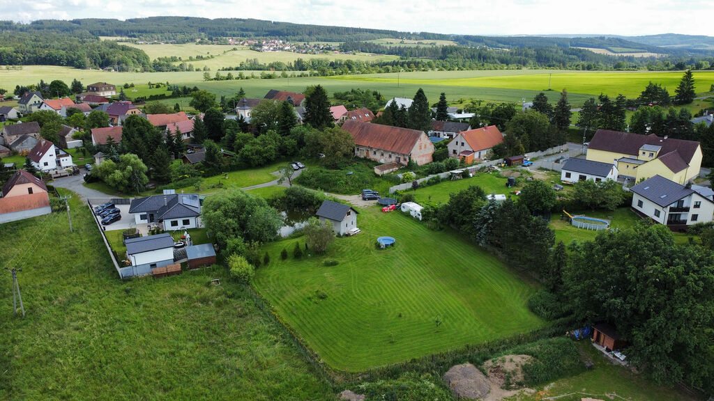 Stavební pozemek o rozloze 3260 m² s rodinným domem a platným stavebním povolením na rozšíření domu