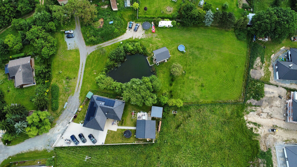 Stavební pozemek 3260 m² u Plzně s jezírkem a projektem – skvělá investiční příležitost!