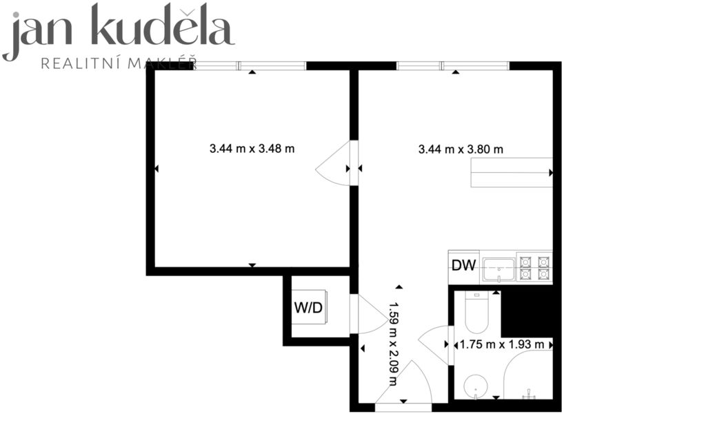 Po vstupu se nacházíte v chodbě, která plynule navazuje na kuchyňský prostor. Z chodby je samostatný vstup do šatny, koupelny s toaletou a do ložnice. Dispozice je praktická a nabízí dostatek úložných možností.