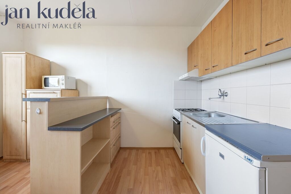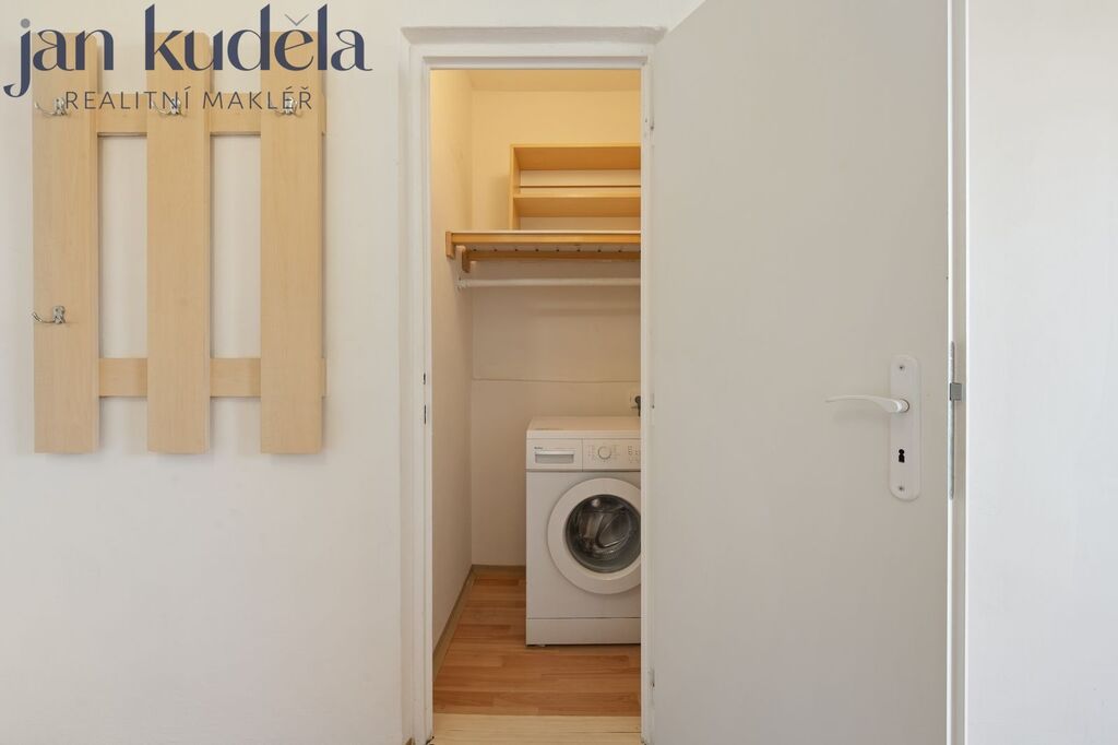Kuchyň je vybavena plynovým sporákem s troubou, lednicí, digestoří a mikrovlnnou troubou. V šatně je umístěna pračka. Veškeré vybavení z fotografií je součástí nájmu. Byt bude navíc dovybaven sedací soupravou v jídelní části.