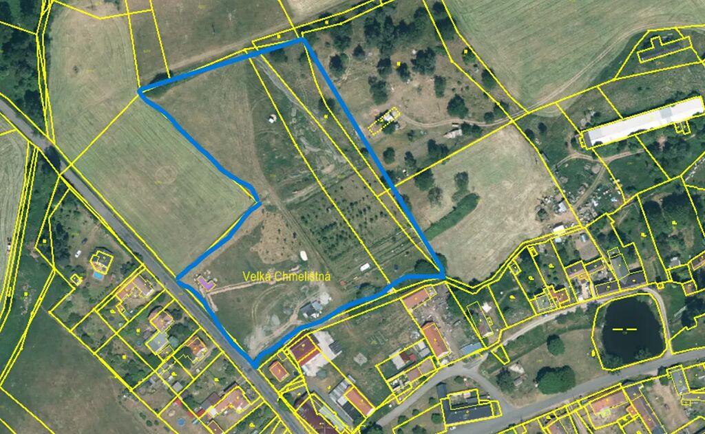 Dovolujeme si Vám exkluzivně nabídnout rozlehlý, rozmanitý pozemek o výměře 20.199 m² na okraji malebné obce Velká Chmelištná, v okrese Rakovník. Pozemek se nachází v těsné blízkosti nádherných hlubokých lesů, v klidné lokalitě bez rušivých vlivů (žádné letiště, žádný průmysl), ideální pro projekty vyžadující ticho, prostor a inspiraci.