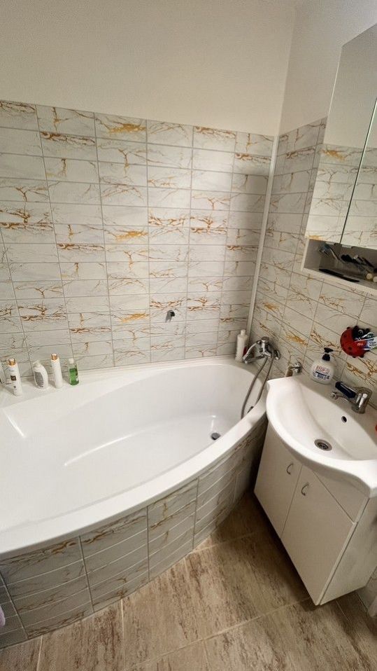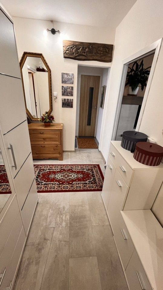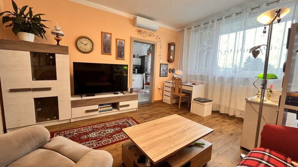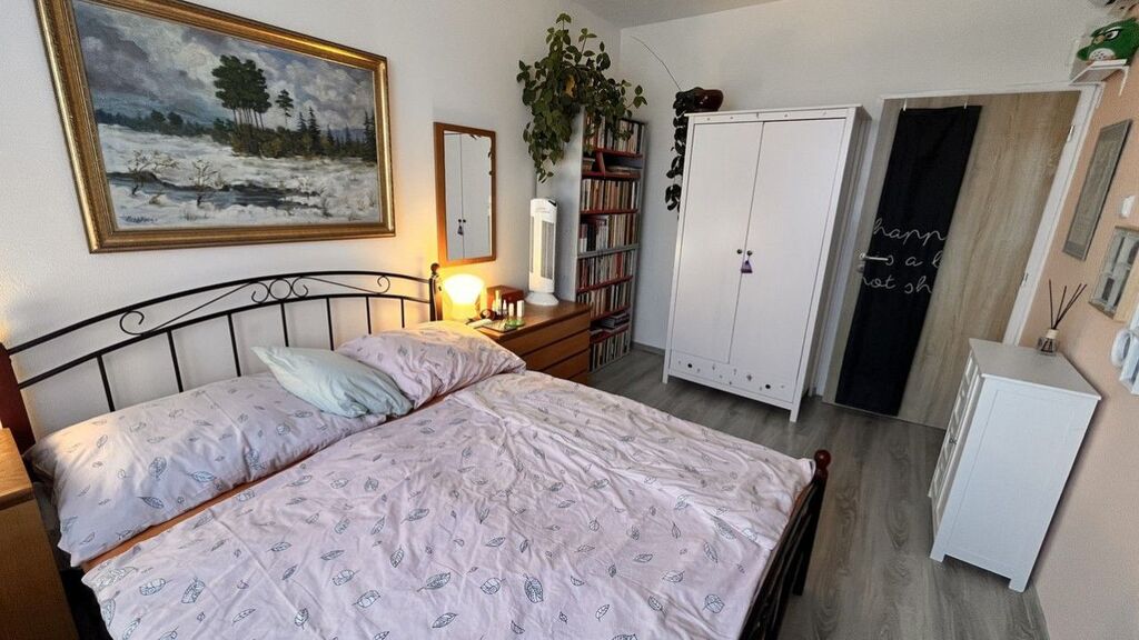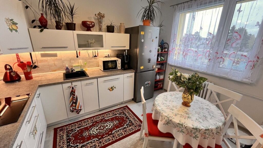 Samotný byt vás uvítá prostornou chodbou, ze které se dostanete do dalších částí bytu. První pokoj vlevo má cca 16 m2 užitné plochy a nyní slouží jako pokoj pro hosty. V zadní části po levé straně nalezneme ložnici s plochou přes 11 m2. Zděná koupelna s toaletou je na konci chodby vpravo. Obývací pokoj má rozlohu přes 19 m2 a nabízí dostatek prostoru k relaxaci stejně jako zasklená lodžie vedle něj. Tam si můžete vychutnat například ranní kávu. Sousedící kuchyň má bohatě dostačujících 14 m2. Celý prostor působí velmi vzdušně, svěže s dostatkem světla. Kompletní rekonstrukce bytu proběhla před 3 lety, jsou zde použity kvalitní materiály a je to na bytě rozhodně znát. V obývacím pokoji a ložnici je klimatizace, který umí i topit.