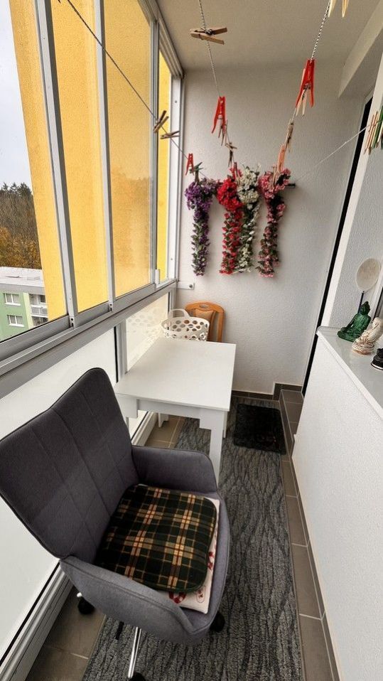 Prodej bytu 3+1+L v Rumburku Dovoluji si vám nabídnout prodej družstevního bytu 3+1 se zasklenou lodžií, zděnou koupelnou, sklepem s užitnou plochou cca 73 m2 v Rumburku. Byt se nachází ve 6. patře revitalizovaného zatepleného domu na sídlišti Podhájí. Nespornou výhodou je jeho výborná poloha. Okna obývacího pokoje a kuchyně směřují na jih a nabízí výhledy do lesa, který je vzdálen necelých 200 m. Odtud můžete podnikat procházky například na nedalekou rozhlednu Dymník.