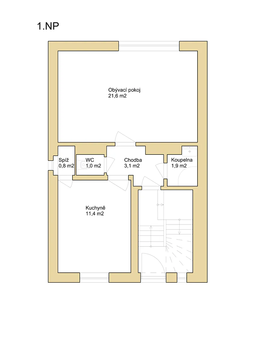 Dispoziční řešení: 1.PP (suterén) – sklep, prádelna, technická