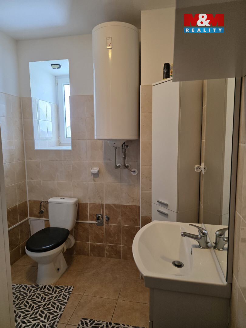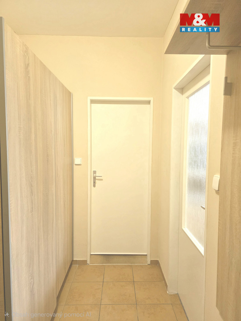 Částečně zařízený byt disponuje kuchyní spojenou s obývacím pokojem, ložnicí, předsíní a koupelnou se sprchovým koutem a toaletou.