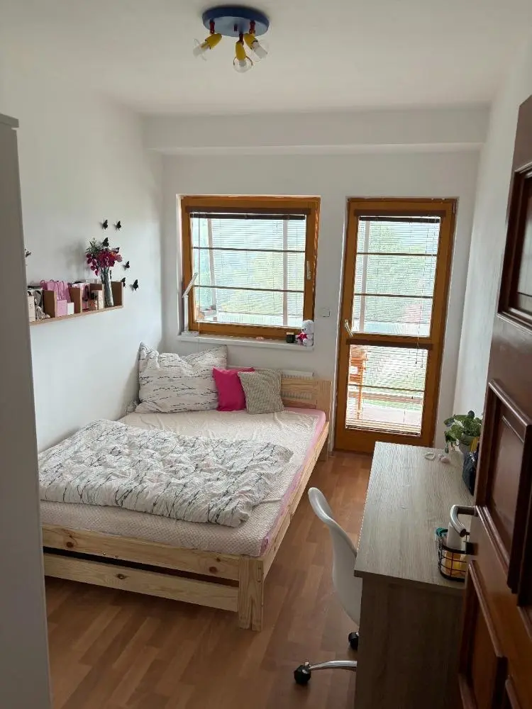 Nabízíme k prodeji hezký a útulný byt 3+kk s prostornou zimní zahradou v klidné lokalitě města Sušice v 2.patře nízkoenergetického domu kolaudovaného v roce 2003. Součástí bytové jednotky jsou garážové stání pro 2 automobily o velikosti 28m2 a sklep o velikosti 4m2 umístěné v přízemí Bytového domu. V domě se nachází pouze 9 bytových jednotek, které nabízí bydlení zájemcům toužícím zkombinovat výhody kompletní občanské vybavenosti města Sušice a krásné Šumavské přírody v blízkém okolí. Podlahová plocha bytu včetně zimní zahrady je 75m2, Nemovitost nabízí dostatek úložného prostoru, dispozičně 3 neprůchozí pokoje se samostatnými vstupy na zimní zahradu, kuchyňský kout, předsíň, chodba, komora, 2 šatny, spíž, samostatné WC a koupelna s vanou. Zimní zahrada nabízí krásné výhledy do okolní krajiny a plně uspokojí zájemce o klidné rodinné bydlení poblíž přírody. Vytápění bytu je zajištěno plynovým kotlem umístěným v přízemí bytového domu a v nemovitosti je umístěna také rekuperační jednotka, která je rozvedena do všech místností.