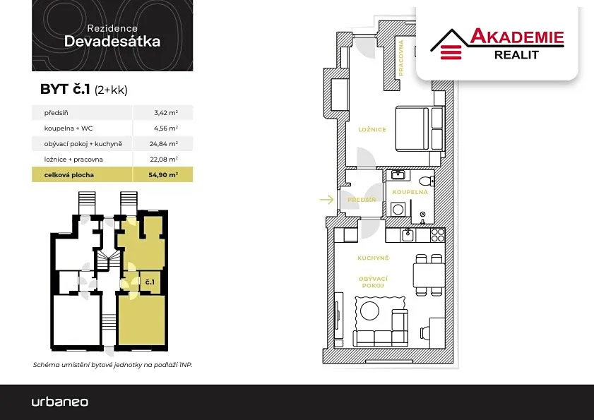 Pronájem Nového velmi prostornéhi bytu 2+kk, ul. Svatopluka Čecha, Brno. Byt o velikosti 64 m2 se nachází v 2.np/3 v exkluzivním projektu rezidence Devadesátka, který byl právě dokončen. Ze vstupní chodby jsou zde samostatné vstupy do všech pokojů a koupelny s wc. Z ložnice je dále vstup na terasu, která navazuje na zahradu. Součástí bytu je veškeré zařízení ( KL včetně vestavných spotřebičů Siemens, pračka se sušičkou samsung, TV samsung ) a vestavný nábytek navržen studiem TRIDESIGN. V bytě je vinylová podlaha, stropní topení a chlazení. Pro maximální soukromí jsou do ulice venkovní žaluzie, dále záclony a závěsy v celém bytě. Technologie v bytě jsou ovládány chytrou domácností LOXONE. K bytu dále náleží sklepní box pro uskladnění všeho možného. Nedaleko se nachází park na Slovanském náměstí, Palackého vrch, koupaliště Dobrák, Obchody a další služby, ktere nabízí vysokou úroveň bydlení. Jedná se o výjimečný byt, orientovaný ve velmi klidné lokalitě s výbornou dostupností MHD ( 10 min do centra ). K nastěhování do 1/2026.