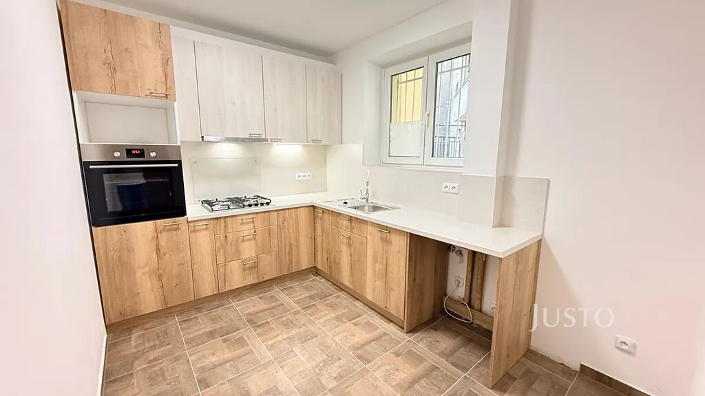 Byt je situován v osobním vlastnictví a nedávno prošel úpravami. Nově vybavená kuchyňská linka v moderním stylu nabízí dostatek pracovního prostoru, vestavěnou troubu, plynovou varnou desku a přípravu na myčku. Byt disponuje prostorným obývacím pokojem a dvěma dalšími pokoji s novou podlahovou krytinou a světlými interiéry. Díky velkým oknům je byt dobře prosvětlený a působí vzdušně. Všechny místnosti jsou neprůchozí, což zajišťuje maximální soukromí.