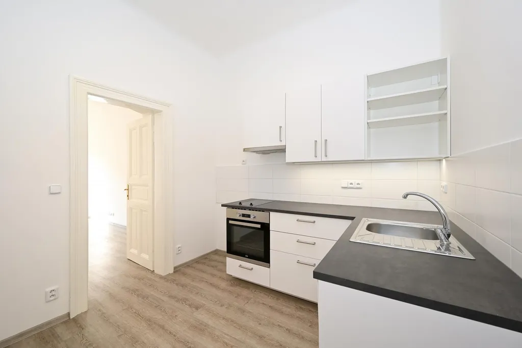 Pronájem zcela nové rekonstrukce nezařízeného bytu 1+1 o velikosti 37 m2 na druhém patře bez výtahu.