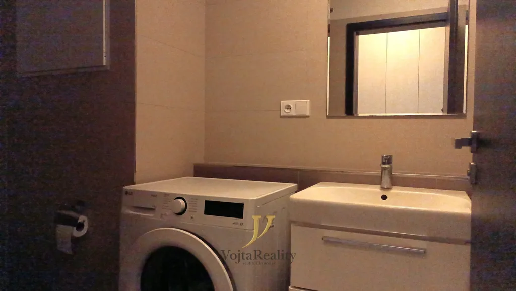 Podlahy v bytě jsou primárně pokryty laminátovou krytinou, v koupelně a na wc dlažba. Okna jsou osazena trojskelným systémem. Vytápění je v celé jednotce teplovodní podlahové. Součástí pronájmu je také úložná komora o výměře 3,35m².