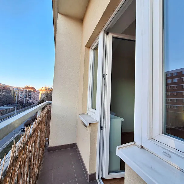 Nabízíme k dlouhodobému pronájmu, byt 2+kk/balkon, situovaný ve 3.podlaží bez výtahu a výměře 42,47m², ul. Ke Krči, Praha 4 - Braník. Byt se nachází v cihlovém, činžovním domě, pouhé 4 minuty pěší chůze od zastávky Přístaviště / U Staré pošty a blízkosti Barrandovského mostu. Byt se pronajímá bez nábytku, ale je vybaven kuchyňskou linkou se spotřebiči (horkovzdušná el. trouba, sklokeramická varná deska, myčka, odsavač par, vestavná kombinovaná lednice s mrazákem). Z chodby se vstupuje do prostoru kuchyně a obývací části, která disponuje balkonem a odtud vedou dveře do ložnice. Koupelna disponuje umyvadlem, sprchovým koutem,otopným žebříkem. Pračka není součástí vybavení, ale je zde na ní přípojka. Toaleta je umístěna samostatně. Na podlahách byla použita plovoucí podlaha a dlažba. K bytu náleží sklep . Byt je vhodný jak pro pár či jednotlivce. V okolí veškerá občanská vybavenost - restaurace, obchody, kavárny, divadlo, plavecký bazén a jiné. Výborná dopravní dostupnost – 9 min. tramvají na Palackého náměstí, do 20 min. na Václavské nám. Výhodou pro řidiče je dobrý přístup na Jižní spojku.