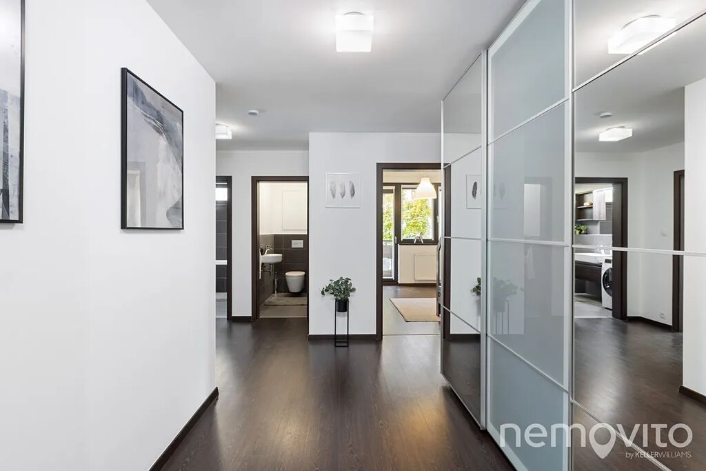 K příslušenství bytu patří dále sklep (1,8 m2) a garážové stání pod domem. Projekt, který má zajímavě řešené atrium s relaxační zónou, těží ze zajímavé polohy na kraji zástavby v jednosměrné ulici, kde je minimální provoz. Přesto však zůstává metro Palmovka perfektně dostupné, a to v rámci jednotek minut chůze. Pokud vás o nabídce zajímá více informací, rád vám pošlu odkaz na web bytu.