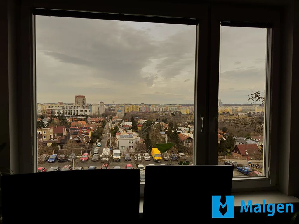 Byt zaujme moderním standardem — vinylové podlahy, podlahové topení v koupelně i na WC, koupelna a toaleta jsou navíc prakticky oddělené. Kuchyňská linka je vyrobena na míru a všechny spotřebiče včetně americké lednice v bytě zůstávají. Dispozice je velmi praktická: obývací pokoj plynule navazuje na kuchyňský kout, dva samostatné neprůchozí pokoje jsou aktuálně využívány jako ložnice a pracovna. K bytu náleží také prostorná zasklená lodžie.