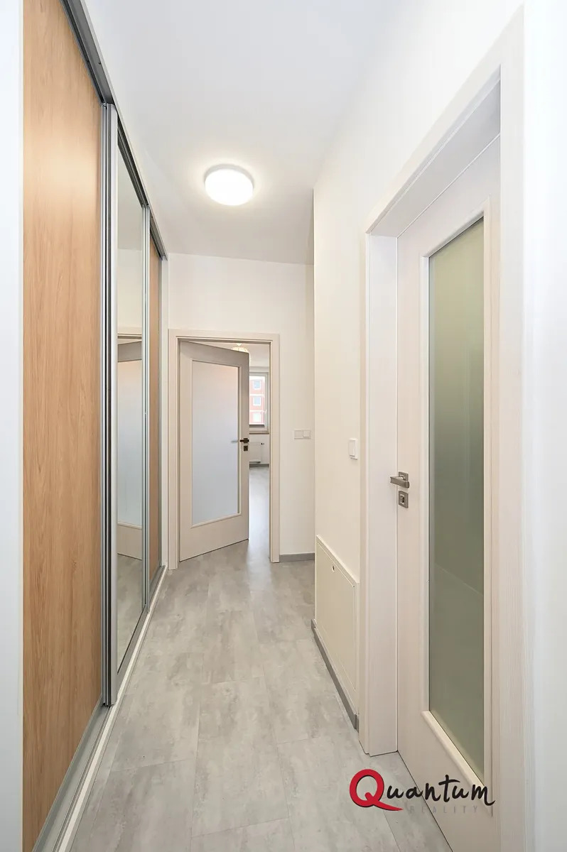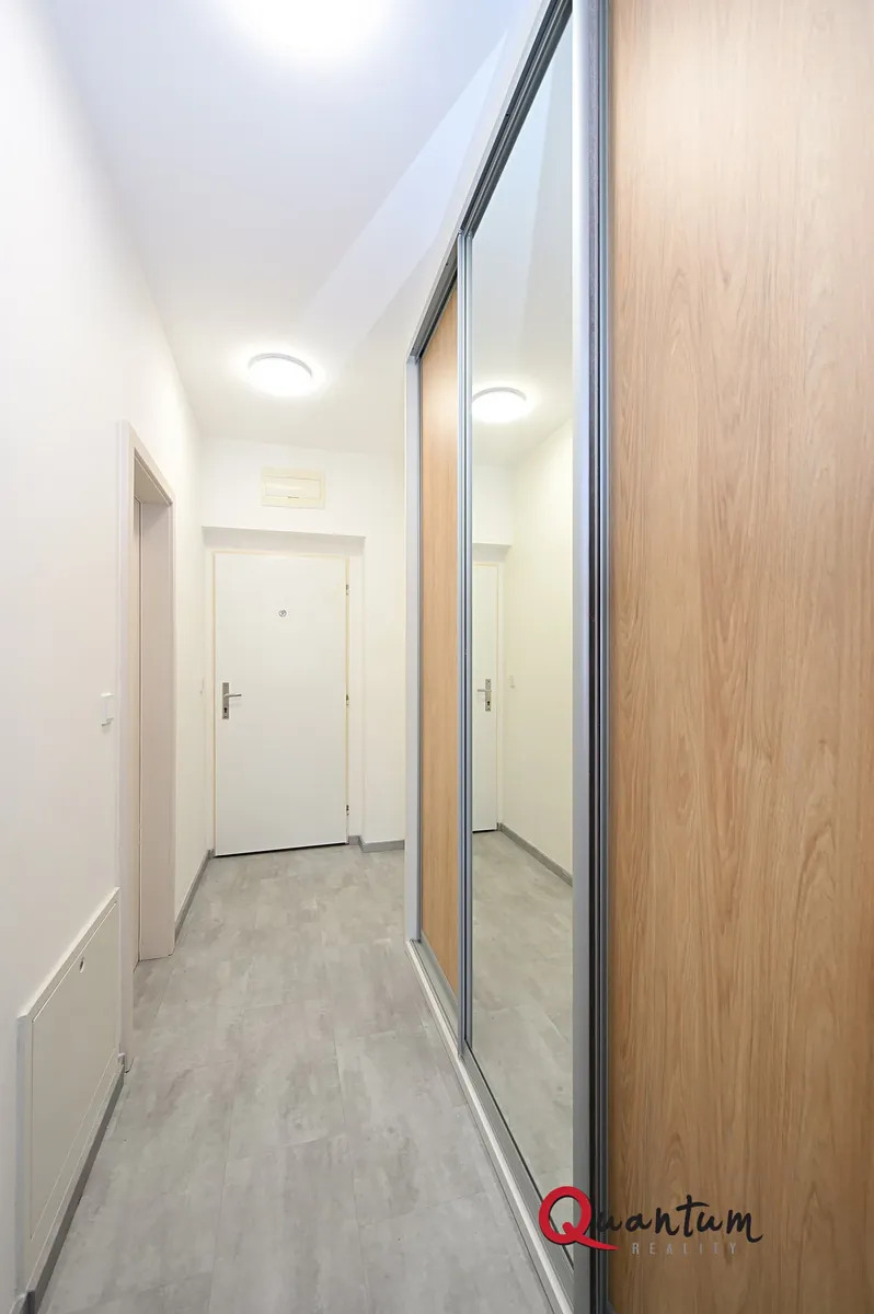 Nabízím k pronájmu světlý byt 2+kk o velikosti 53 m² v 1. patře starší novostavby z roku 2004 (bez výtahu) v klidné ulici Remízková v Újezdu u Průhonic. K bytu náleží balkon 3 m², parkovací stání v suterénu domu a sklep 2 m². V domě je k dispozici také kočárkárna/kolárna.