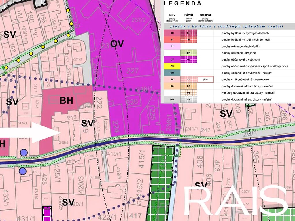 Pozemek se nachází v atraktivní lokalitě s velkým potenciálem. Dle územního plánu je zde povoleno: