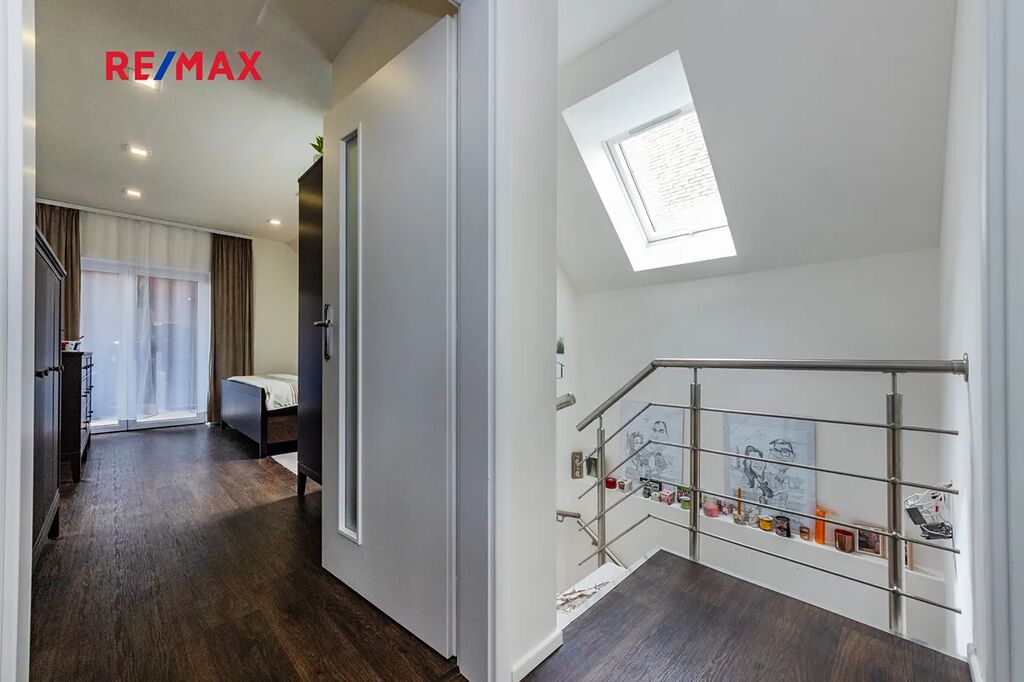 Z chodby v prvním patře je také přístup do půdního prostoru, který slouží jako praktické místo pro ukládání sezónních věcí, sportovního vybavení nebo jiného majetku, který nechcete mít trvale v obytné části domu.