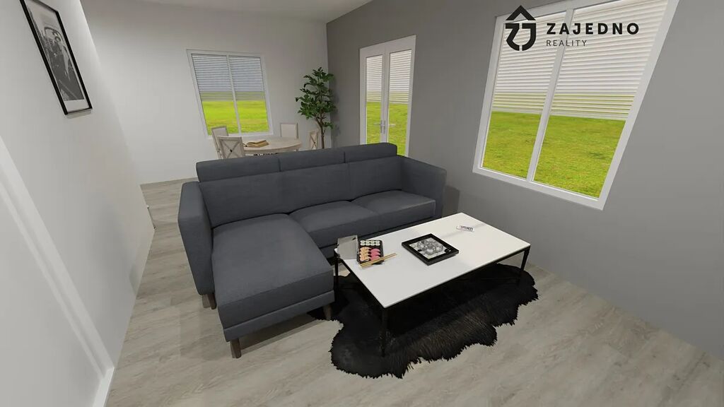 Dovolujeme si Vám představit projekt šesti rodinných domů o dispozici 4+kk v obci Hrubšice u Ivančic. Jedná se o tři dvojdomy, které jsou jednogenerační. Každý rodinný dům je nepodsklepený s obytným podkrovím zastřešený sedlovou střechou. Dům je napojený na veškeré inženýrské sítě. Obvodové konstrukce a vnitřní stěny jsou provedeny jako rámové dřevěné konstrukce v systému HAAS FERTIGBAU. Strop přízemí a podkroví jsou tvořeny dřevěnými stropními nosníky vyplněné tepelnou izolací. Podhled je tvořen sádrokartonem na laťování. Objekt zastřešuje sedlová střecha ze skládaných betonových tašek.