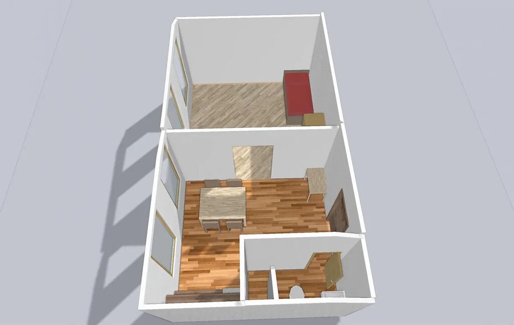 nebo naopak spojení pater a propojení se zadní částí domu (např. zimní zahradou) vzniknou tak 2 prostorné bytové jednotky + půdní vestavba