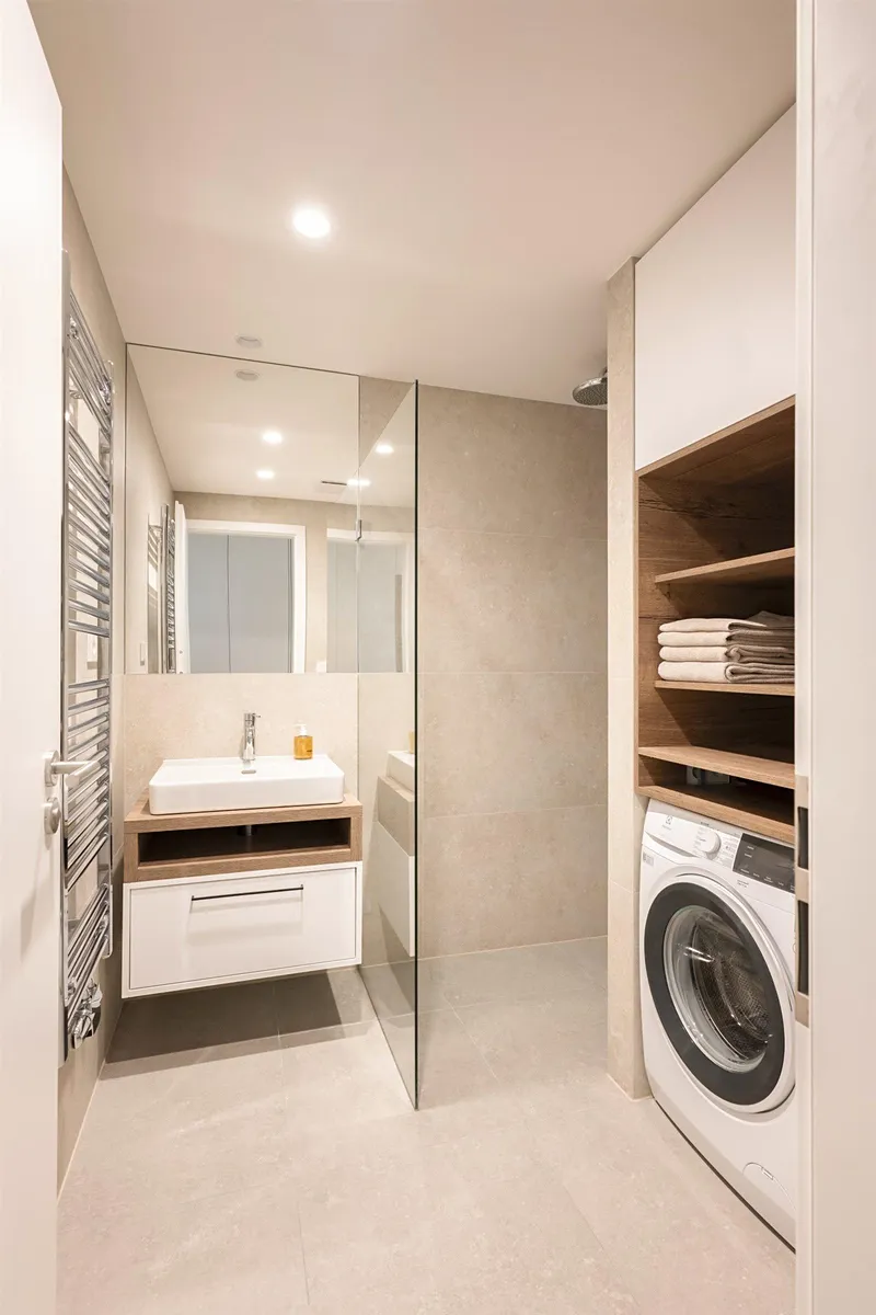 Byt je dokončen do standardu „fit out“, tedy k nastěhování – včetně finálních povrchů, sanitárního vybavení kuchyňské linky, nábytku na míru a dalšího vybavení. Nechybí dřevěné podlahy, nová okna a moderní koupelna.