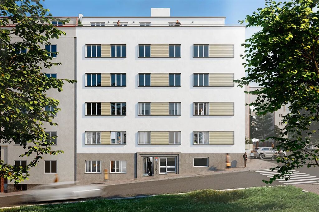 Celý dům prošel citlivou rekonstrukcí a rezidenti mohou nově využívat praktické společné prostory jako jsou fitness, sauna, kolárna, kočárkárna nebo klidný vnitroblok určený k odpočinku.