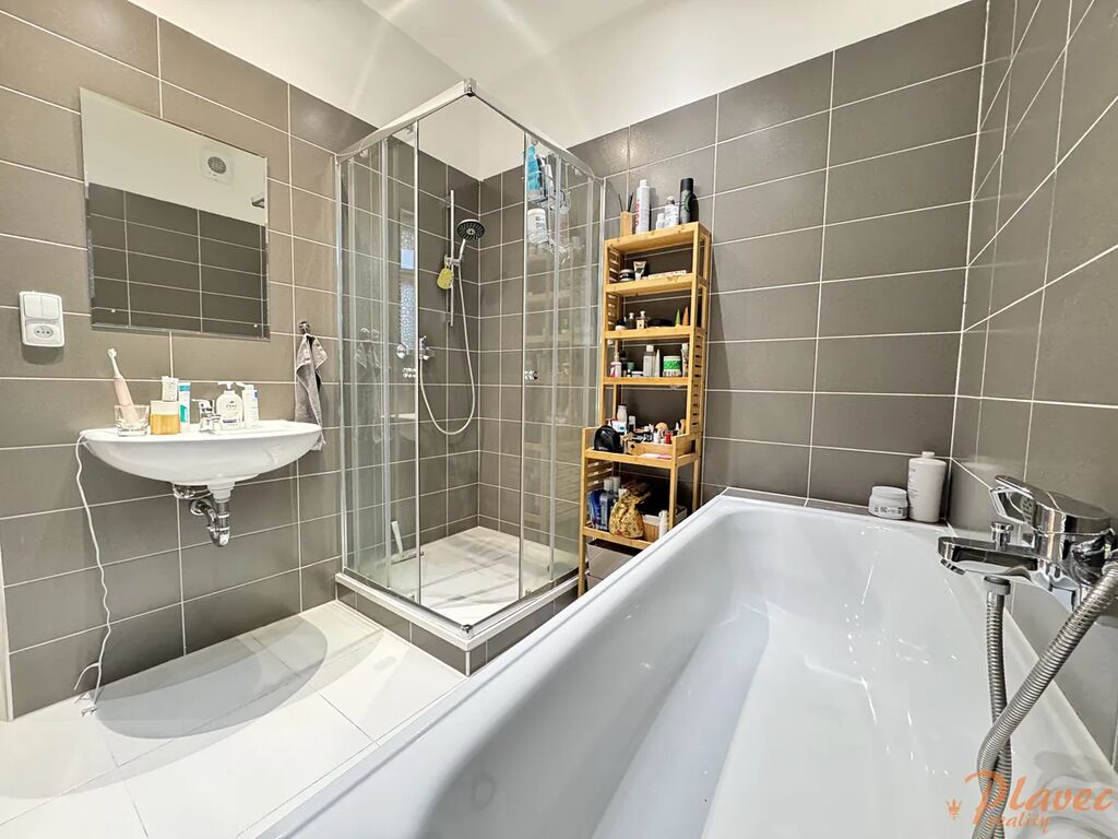 Byt se nachází ve 3. patře cihlového domu s výtahem. Vytápění i ohřev vody jsou centrální. Byt je vybavený pouze kuchyňskou linkou se sklokeramickou deskou, elektrickou troubou, digestoří, mikrovlnnou troubou, dřezem s odkapávačem a myčkou. Po dohodě je možný odkup nábytku od stávajícího nájemce. Obývací pokoj i ložnice jsou orientovány do vnitrobloku.