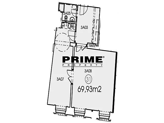 Dispozice prostor: vstupní hala 11m2, dvě samostatné místnosti (jedna větší 33m2 a jedna menší 20m2, obě mají vstupy z haly a zároveň mají mezi sebou spojovací dveře; menší kancelář má kuchyňku) a koupelna (se sprchovým koutem, umyvadlem a toaletou).