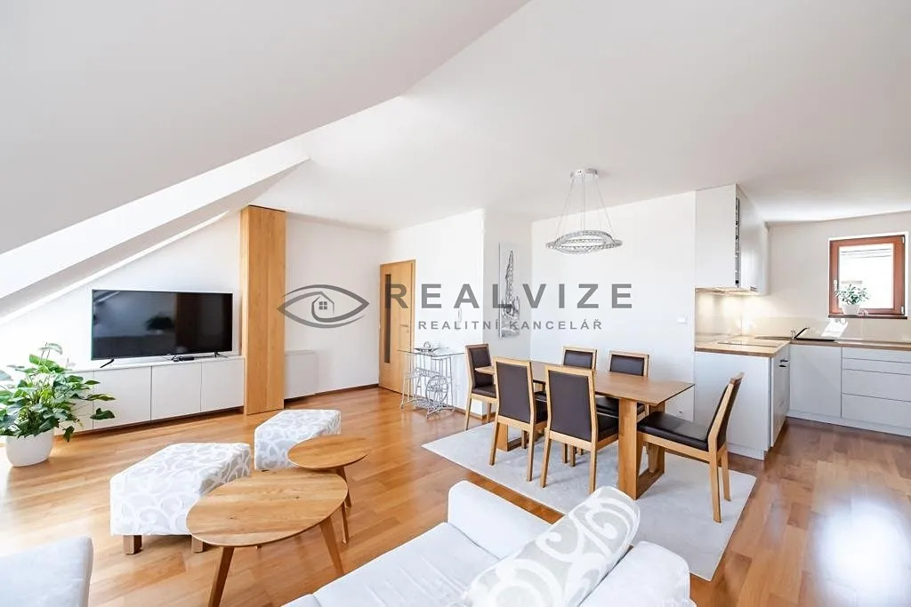 Nabízíme k pronájmu plně vybavený apartmán o dispozici 3+kk ( 85,5 m2) s terasou (7,6m2) a garážovým parkovací stáním v bytovém komplexu Podzámčí v Hluboké nad Vltavou. Byt je v horním patře domu s výhledem z terasy do okolí. Dům se nachází v samotném centru obce. Nákupní zóna a sportovní areál s golfovým hřiště jsou v docházkové vzdálenosti. Byt je nabízen kompletně vybavený nábytkem, jak je prezentováno na fotografiích. Nabízí prostornou vstupní halu se šatnou, obytnou místnost s jídelním a kuchyňským koutem se vstupem na terasu, dětský pokoj ( pracovnu), ložnici, koupelnu a samostatné WC. Bezproblémové parkování je zajištěno v suterénu domu. K dispozici je taktéž sklep ( 2,5m2). Nájemné je stanoveno na 22.000,-Kč /měsíc, zálohy na služby spojené s užíváním bytu jsou stanoveny na 6.000,-Kč, majitel požaduje kauci ve výši 50.000,-Kč.
