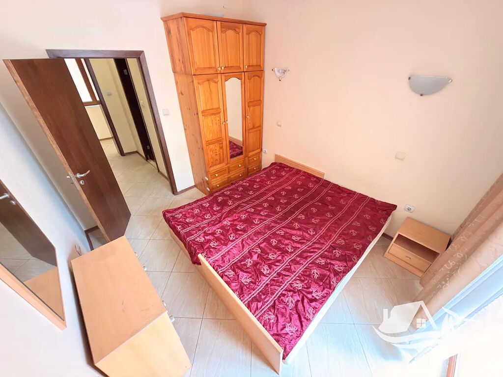 Apartmán o velikosti 58 m² působí útulně a vzdušně. Obývací pokoj s kuchyňským koutem je místem pro společné chvíle, ložnice poskytuje tiché zázemí a balkon s výhledem na bazén je ideální pro ranní kávu nebo večerní posezení po dni stráveném u moře. Díky pečlivě udržovanému komplexu, výtahu a bezpečnému prostředí se jedná o pohodlné zázemí pro rekreaci i delší pobyty.