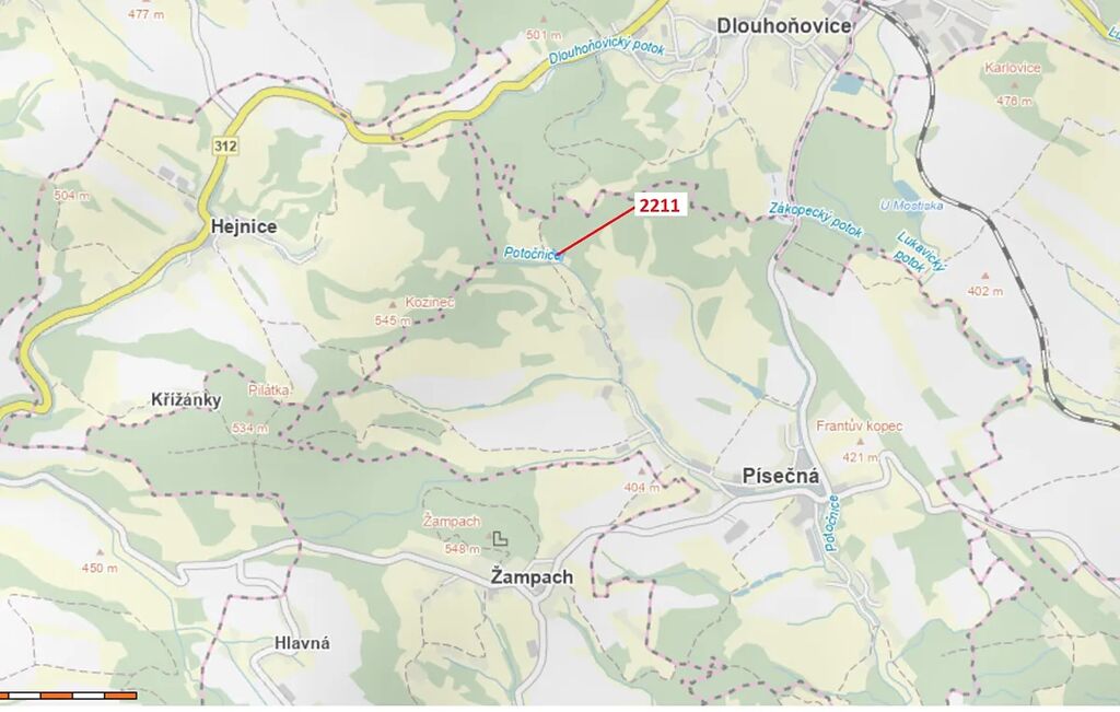 Trvalý travní porost o výměře 3051 m2, parcelní číslo 2211, podíl 1/1, katastrální území Písečná u Žamberka, obec Písečná, obec s rozšířenou působností Žamberk, okres Ústí nad Orlicí, Pardubický kraj.