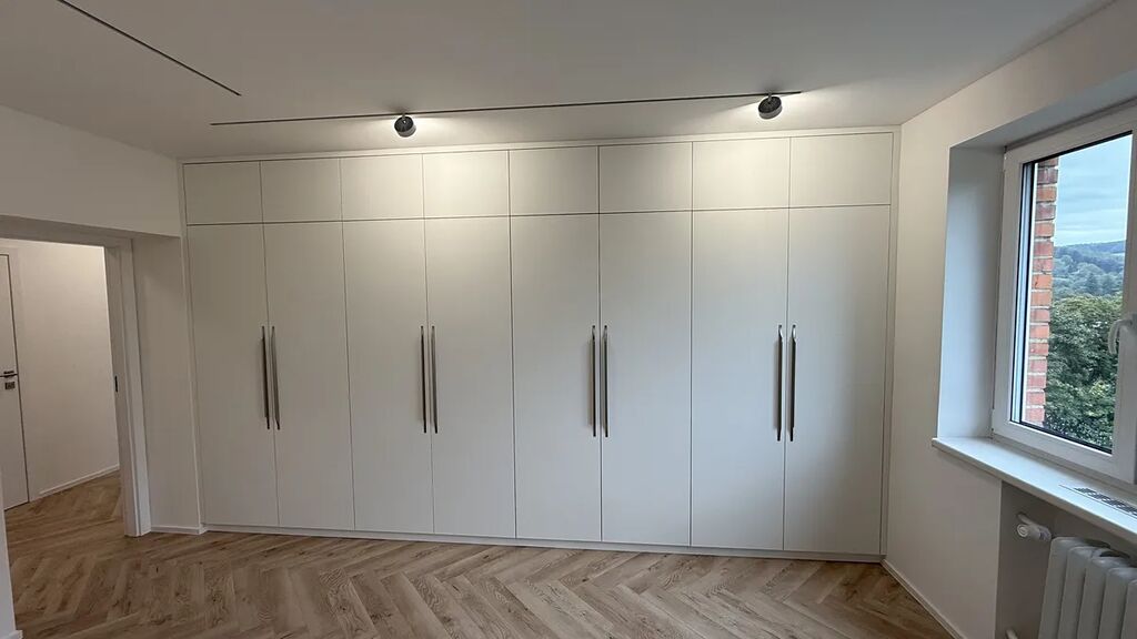 Tento záměr se mu ve spolupráci se šikovnou stavební firmou, stolaři, podlaháři, elektrikáři, instalatéry a specialisty na odhlučnění mimořádně povedl. Vše probíhalo pod dohledem architekta, který velmi citlivě, vkusně, jednoduše a přitom účelně volil jednotlivé barvy nábytku, vestavěných skříní a prvků, provedení , materiály a rozložení nové kuchyně, výběr moderních bezfalcových dveří s obložkami, vyrovnání podlah a položení velmi hezké laminátové podlahy v dřevěném dekoru v ducha místa a Baťovské éry. Stejně jako výběr velmi nestandartních páskových obkladů do koupelny a WC v industriálním stylu, výběr skříněk do koupelny, WC, botníku na chodbě nebo pouzdru na klíče, to vše v kontrastním dřevěném dekoru k čistým liniím bytu.