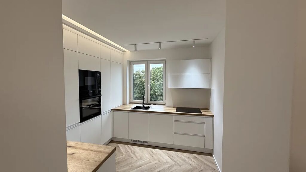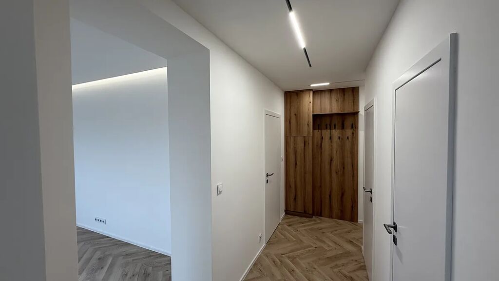 Byt prošel náročnou, kompletní a velmi citlivou rekonstrukcí na jaře tohoto roku. Majitel neponechal nic náhodě a s požadavkem na vytvoření moderního, vzdušného a příjemného bydlení.