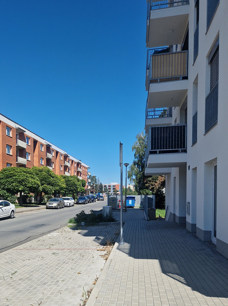 Parkovácí místo je prostorné, s napojením na elekřinu, přímo u vstupu do domu. Rozměr stání je 3,5 x 7m.
