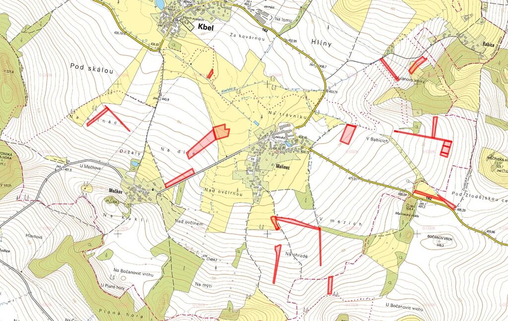 - parcely číslo 86/15, 128/2, 156/3, 181/11, 183/6, 183/26, 183/36, 185/11, 320/1, 325/1, 332/1, 346/18, 638/21, 655/3, 655/7, 668/32 a 669/27