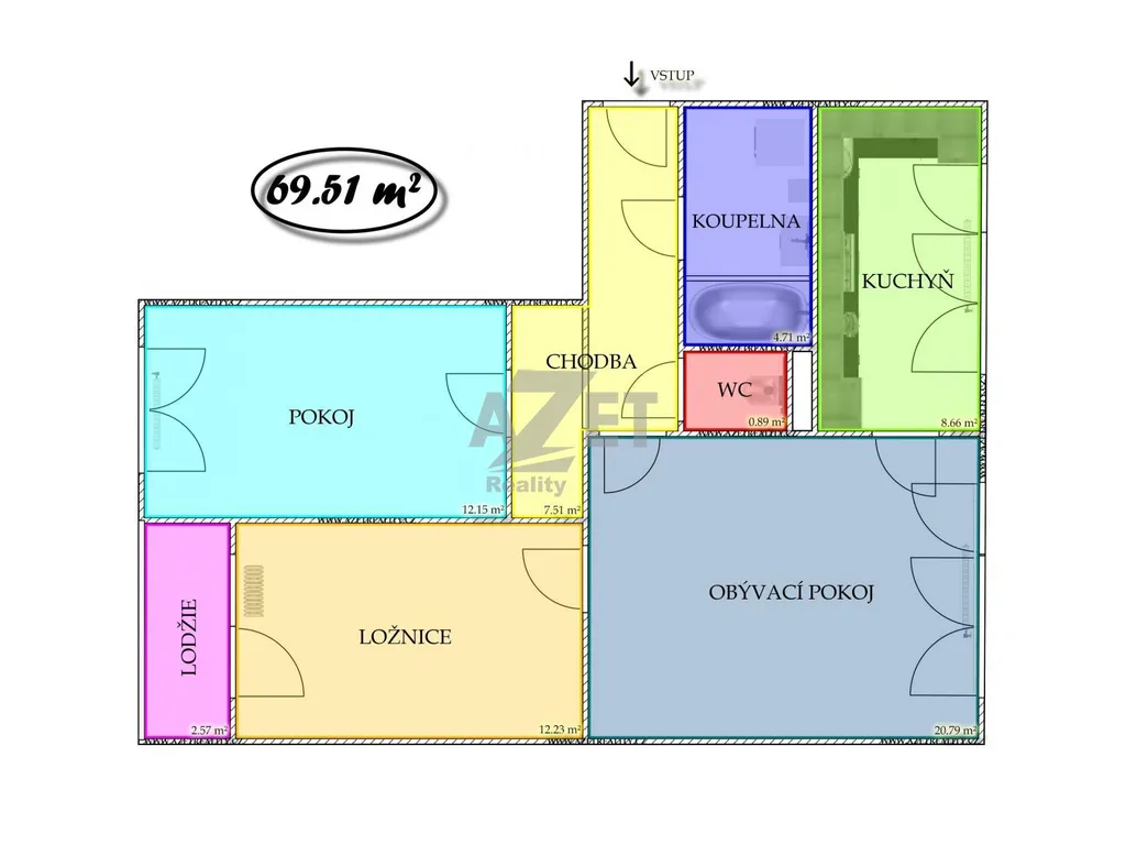 8 - Lodžie - 2,56 m2 o rozměrech 2,46 x 1,04 m