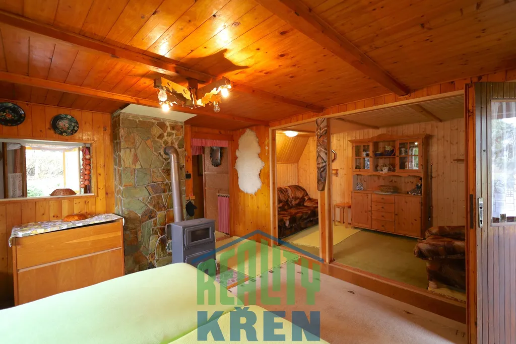 Chata se nachází na pozemku o výměře 400 m2 se vzrostlými stromy, venkovním posezením a parkovacím stáním