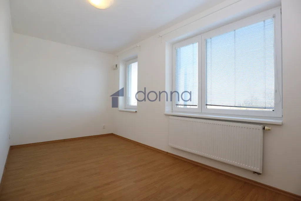 Dominantou bytu je obývací pokoj s kuchyňským koutem, ze kterého je vstup na balkon v létě s hezkým výhledem do zeleně.