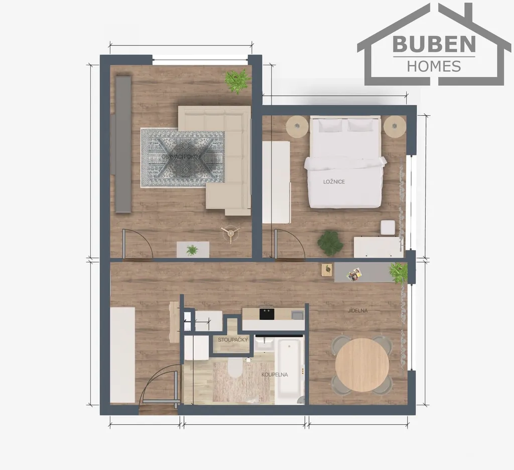 Celková plocha bytu činí 52,12 m². Byt tvoří prostorná chodba se šatní skříní, kuchyň, jídelna, obývací pokoj, ložnice a koupelna s vanou a s toaletou. Místnost jídelny lze po instalaci dveří využít jako další samostatný pokoj. K bytu náleží sklepní kóje o velikosti 1,2 m². Byt prošel částečnou rekonstrukcí (koupelna, omítky, rozvody elektřiny, podlahové krytiny), v roce 2018 byla provedena výměna kuchyňské linky a v roce 2022 byla provedena výměna části podlahových krytin. Byt se nachází v 5. patře bytového domu se dvěma výtahy. V ceně je zahrnuta kuchyňská linka se sporákem, lednice, šatní skříň a pračka.