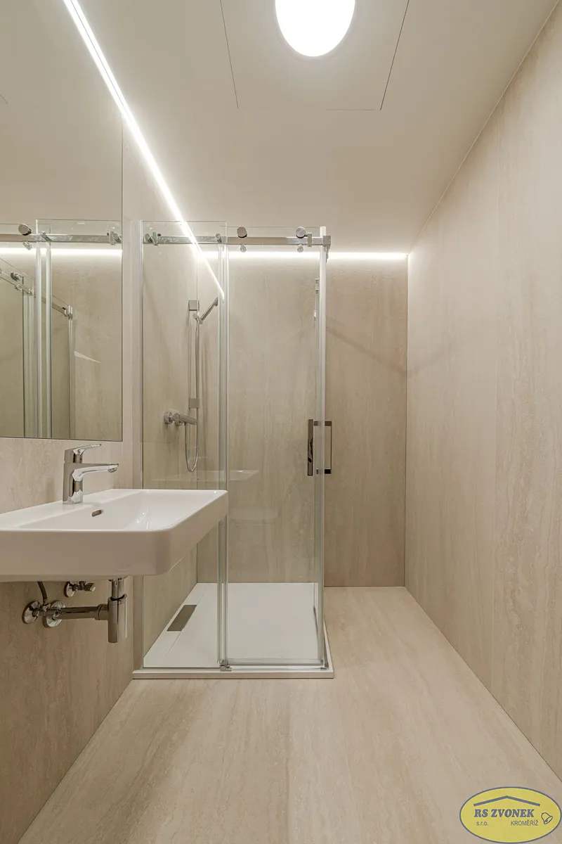 Jedná se o zcela nový byt s nadstandardním interiérovým vybavením - dubové podlahy, masivní dveře, hliníková okna, francouzské rolety ve všech oknech, chlazení místností v letních měsících atd., dále možnost užívat veškerých výhod rezidence - privátní zahradu, ochlazovací biotop, saunu, ohniště a mnoho dalšího. Dispozice - vstupní chodba, koupelna se sprchovým koutem a velký obývací prostor s kuchyňským koutem a balkonem. Díky nejmodernějším technologiím je garantován náklad na vytápění, chlazení a ohřev teplé vody, v řádu sto korun měsíčně!!! K bytu náleží prostorný sklep a parkovací stání. Volný ihned. PENB - B . Vřele doporučujeme prohlídku.