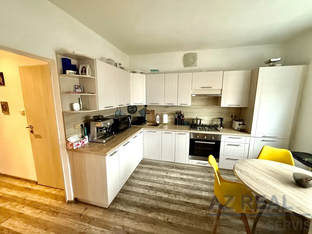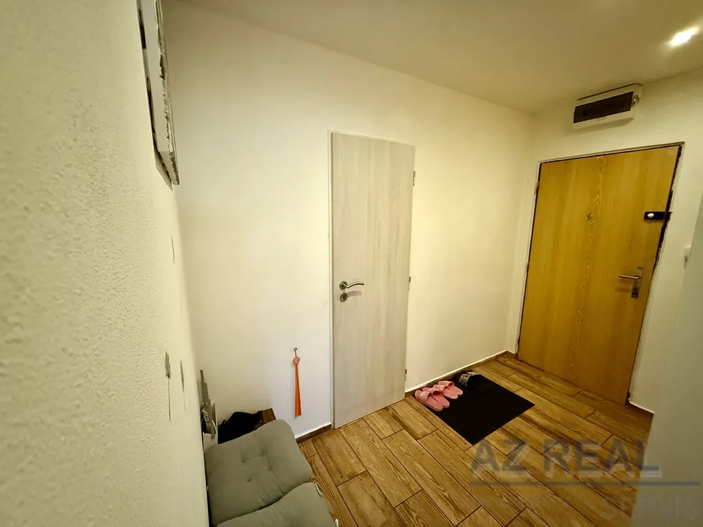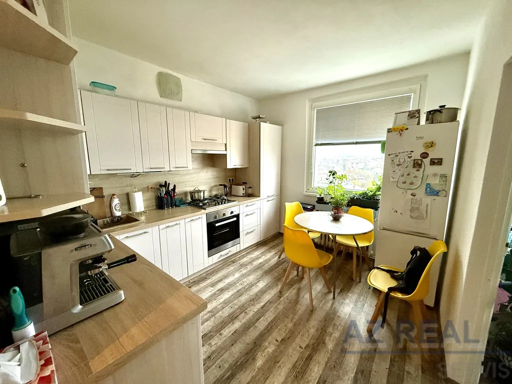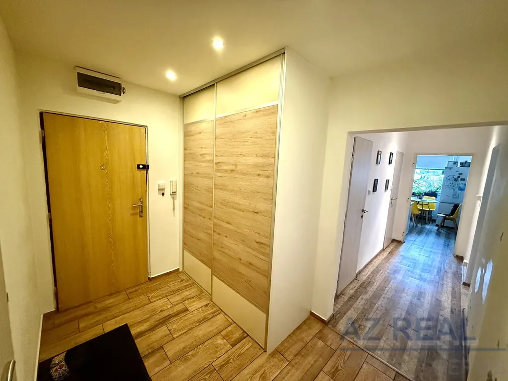 Samotný byt je po nedávné kompletní rekonstrukci, včetně nové kuchyňské linky. Dispozice je velmi praktická – z prostorné předsíně, kde se nachází také samostatná šatna, je vstup do koupelny, na oddělené WC, do ložnice s lodžií, do kuchyně s jídelním koutem a následně do obývacího pokoje. K bytu náleží sklepní kóje v přízemí domu.