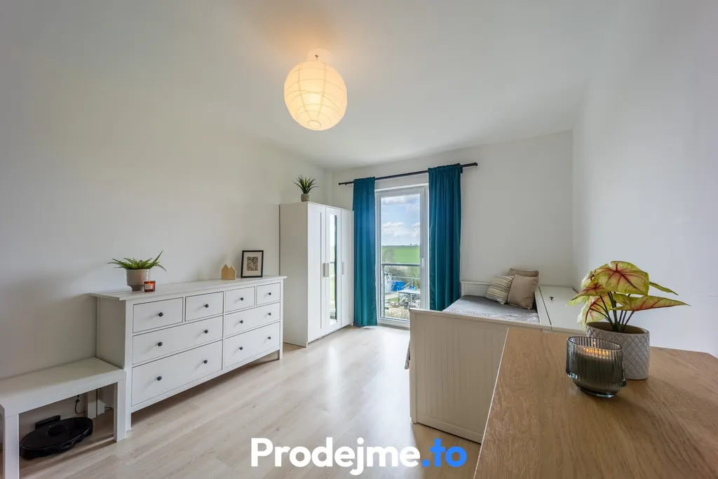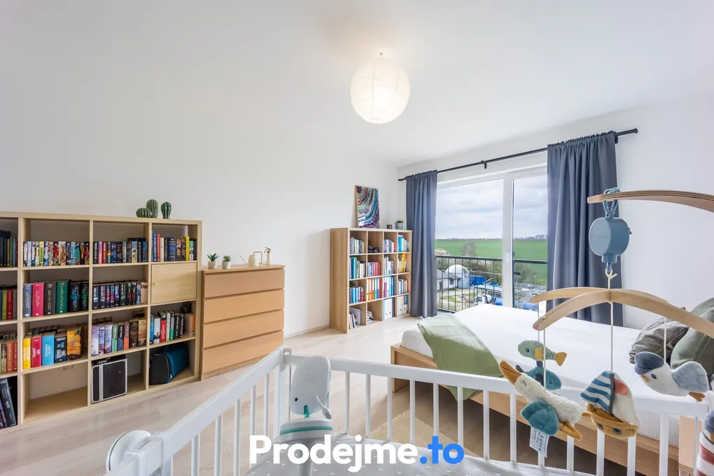 Obývací pokoj je propojený s kuchyní na míru, kde nechybí praktický ostrůvek – skvělé místo pro rychlé snídaně, večerní posezení nebo společné vaření. Odsud také vstoupíte na balkón. Ložnice i dětský pokoj orientované do zeleně vytvářejí pocit klidu i příjemného soukromí. Koupelna je vybavená vanou, umyvadlem a zrcadlem a počítá i s místem na pračku se sušičkou. Samostatná toaleta má vlastní malé umyvadlo. Praktickou součástí bytu je také komora s posuvnými dveřmi – ideální na zásoby a domácí potřeby, které chcete mít po ruce, ale ne na očích.