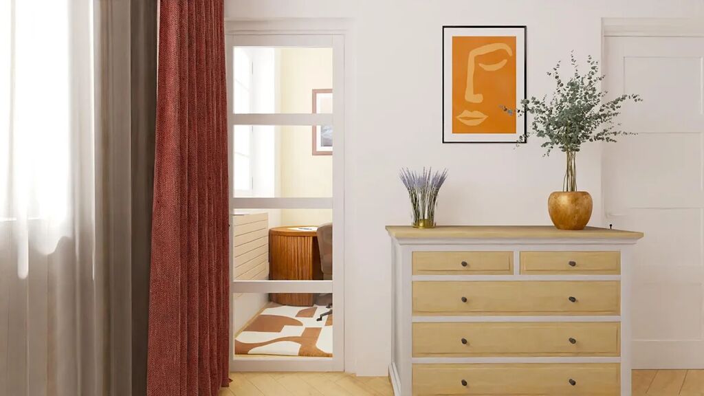 Aktuální dispozice bytu nabízí dva velmi prostorné pokoje o výměrách 19,8 a 20 m2, kde v levém pokoji je poměrně snadné vybudovat kuchyňskou linku a současnou kuchyni tak přetvořit na ložnici orientovanou do vnitrobloku. K ložnici by pak náležela pracovna či šatna o výměře 3,9 m2.